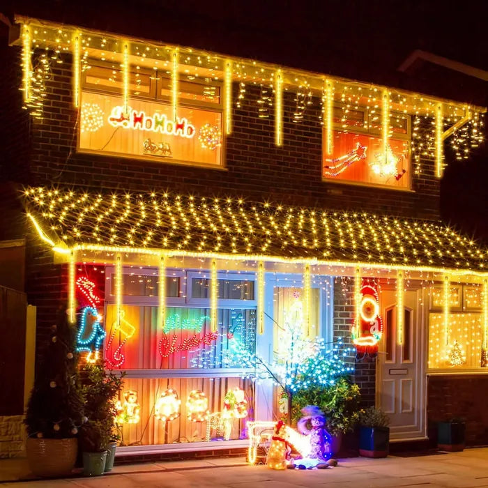 Su diseño de tubos transparentes de policarbonato crea un efecto de caída de meteoritos brillante y realista. Decoración elegante para transformar cualquier espacio en un ambiente cálido, romántico y festivo.
